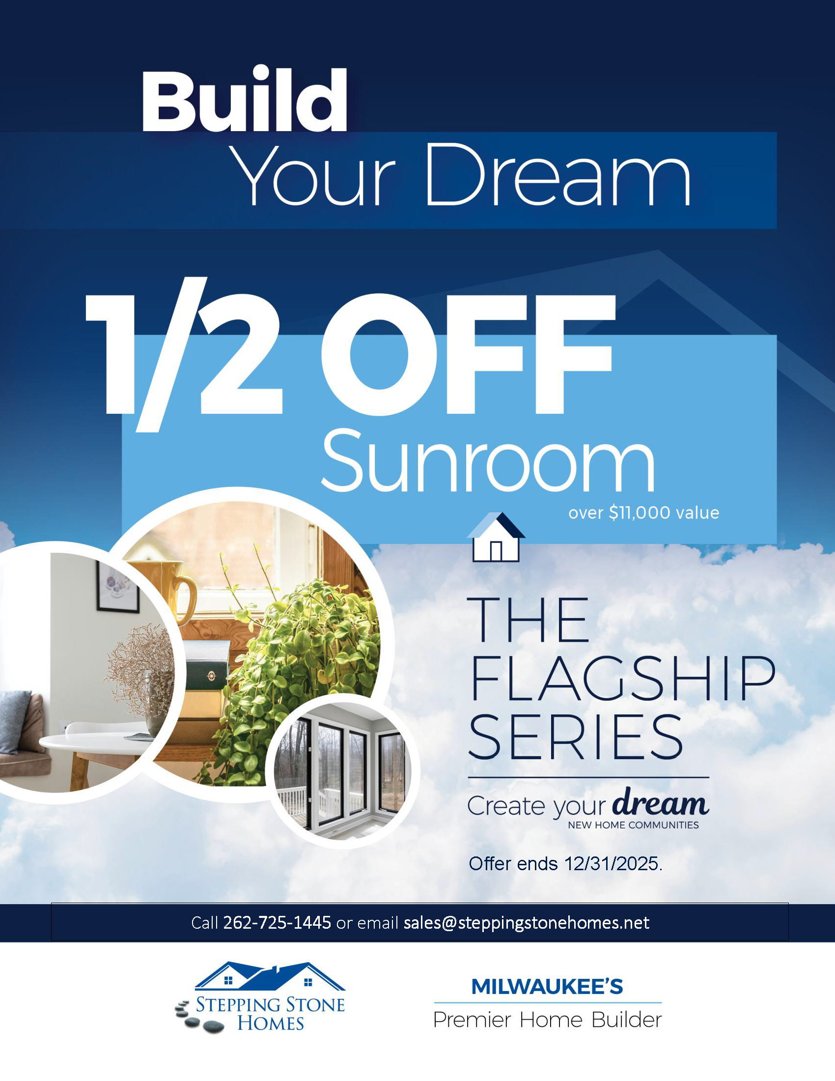 For a limited time, when you build with us, you’ll receive 50% off a beautiful sunroom upgrade. The perfect space to relax, entertain, or simply enjoy the Wisconsin sunshine year-round.
